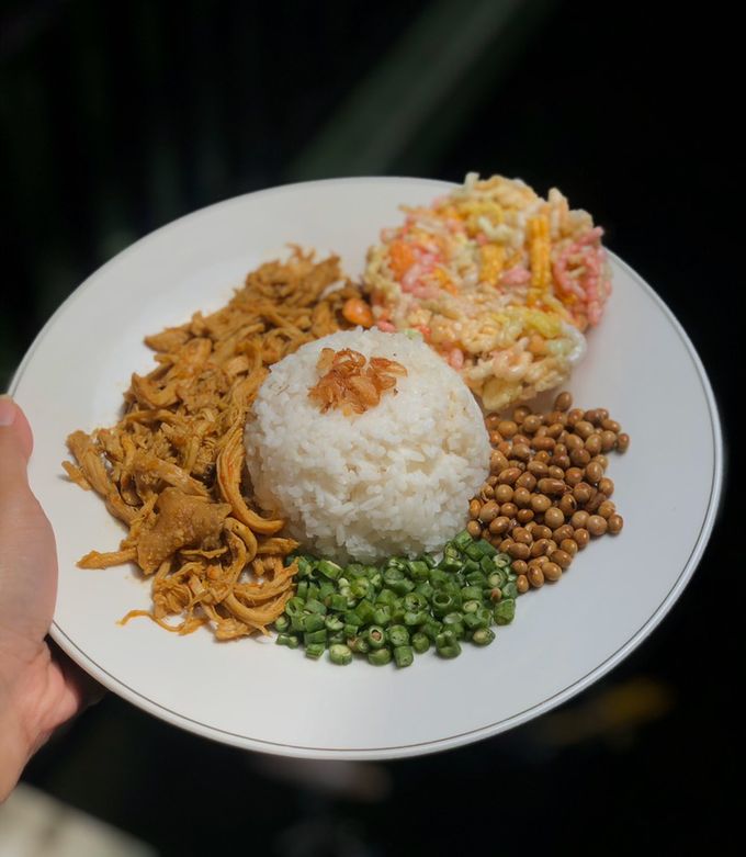Walaupun terlihat sederhana, kombinasi lauk seperti ayam suwir, telur, dan kering kentang menciptakan harmoni rasa yang unik.